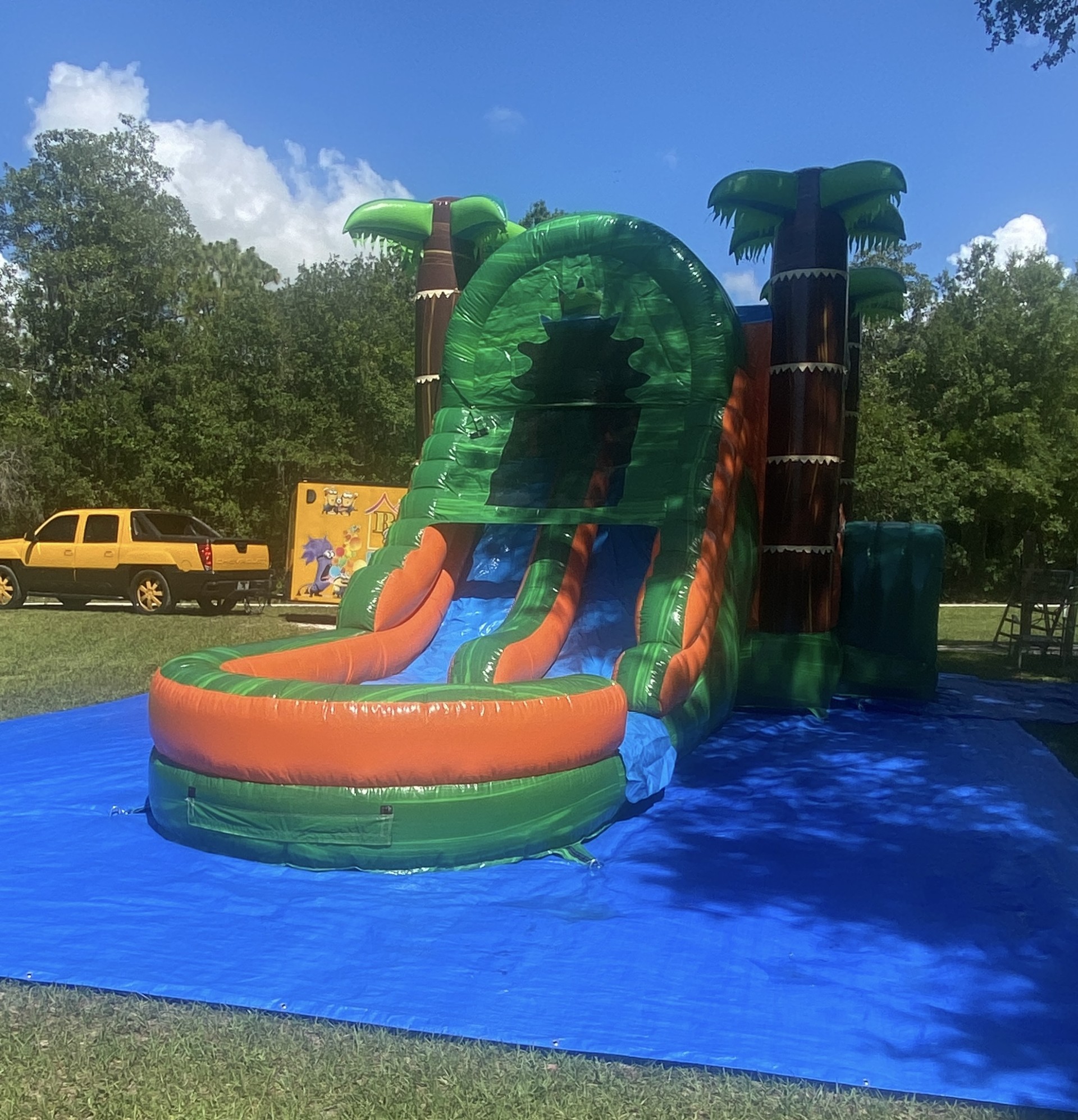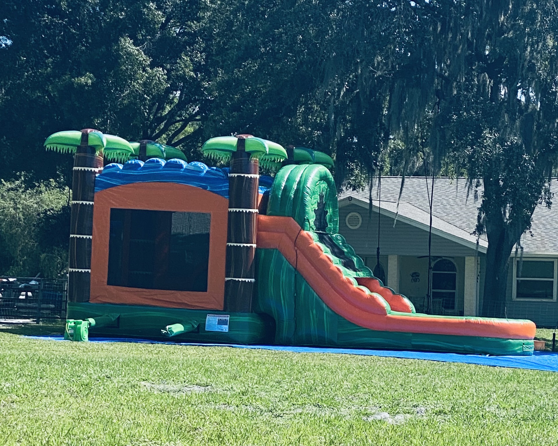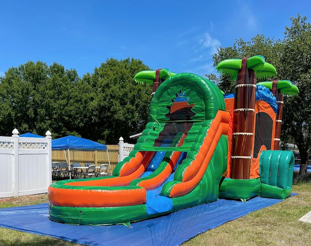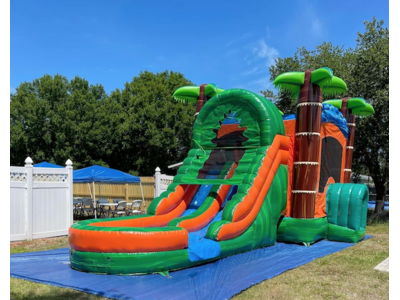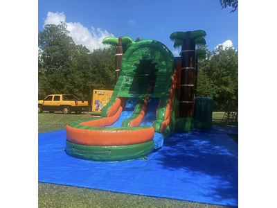 The 5 in 1 Castle combo also includes a (1) indoor basketball court, a (2) rock-climbing wall, (3, 4) Dual Slides which can be used wet or dry and (5) an inflated pool area. Recommended weight up to 600 lbs weight capacity. Fun for all ages, children must be supervised at all times. Full Days Rentals must be picked up before Sundown Overnight Rentals Please select (11:45pm) as last time slot. (NO OVERNIGHTS ON SUNDAYS)
