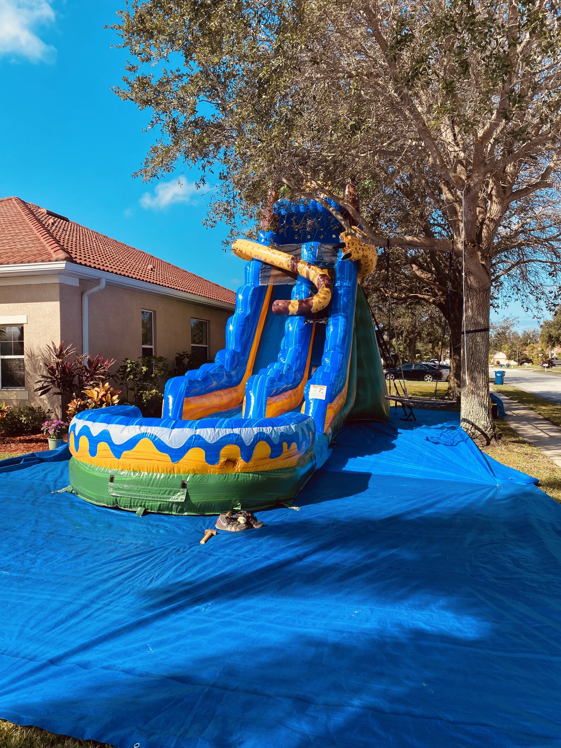 All persons must remove shoes, glasses and jewelry, etc... before playing in the BOUNCE HOUSE / COMBO UNITS / OR WATERSLIDES